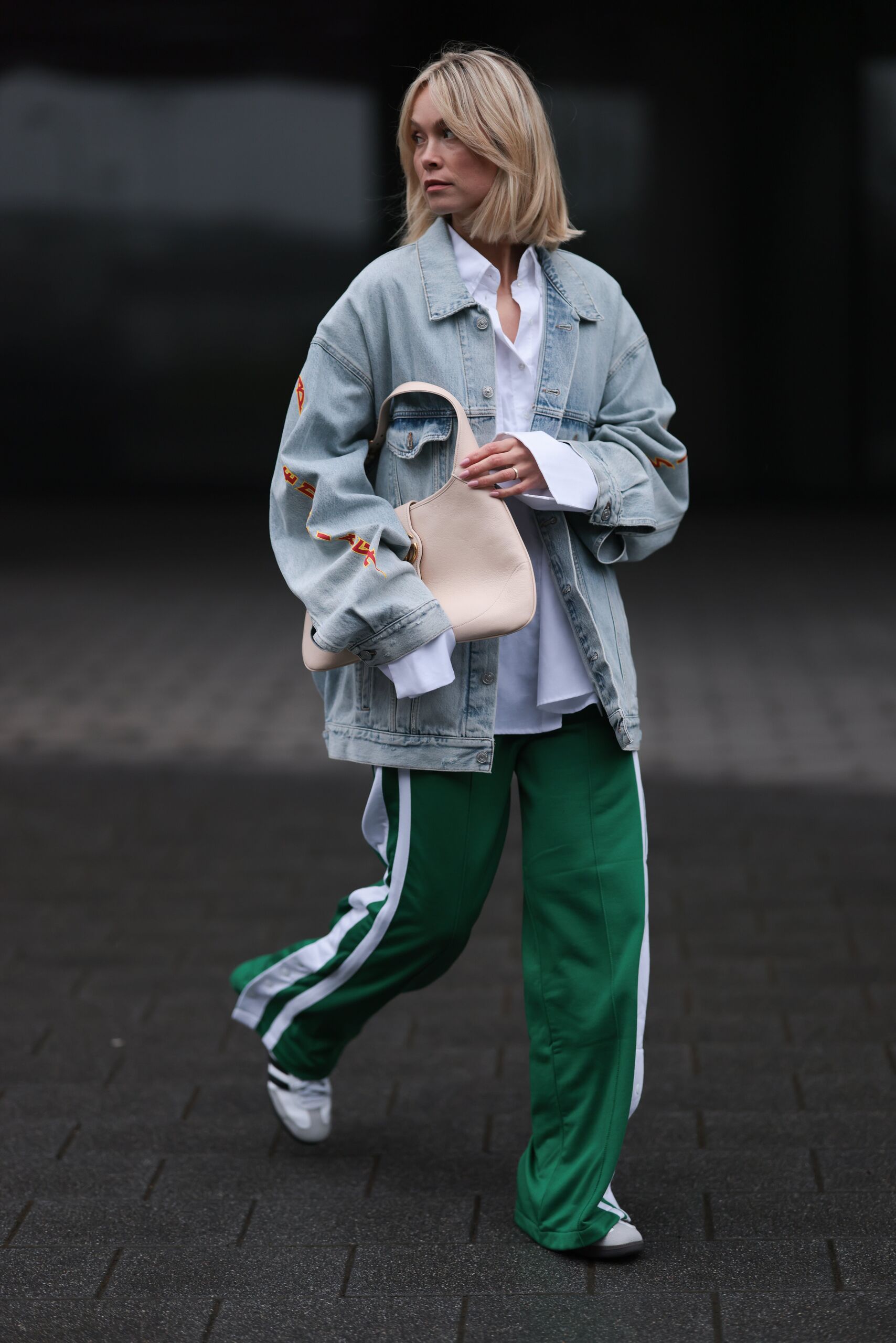 A Sambákat nem csak farmerrel lehet párosítani; praktikusak a laza hétköznapi megjelenésekhez is. Duplázd meg a csíkokat, hogy könnyed, stílusos szettet hozz létre! Ez a megjelenés bizonyítja, hogy lehetsz csinos tréningnadrágban és a tornacipőben is.