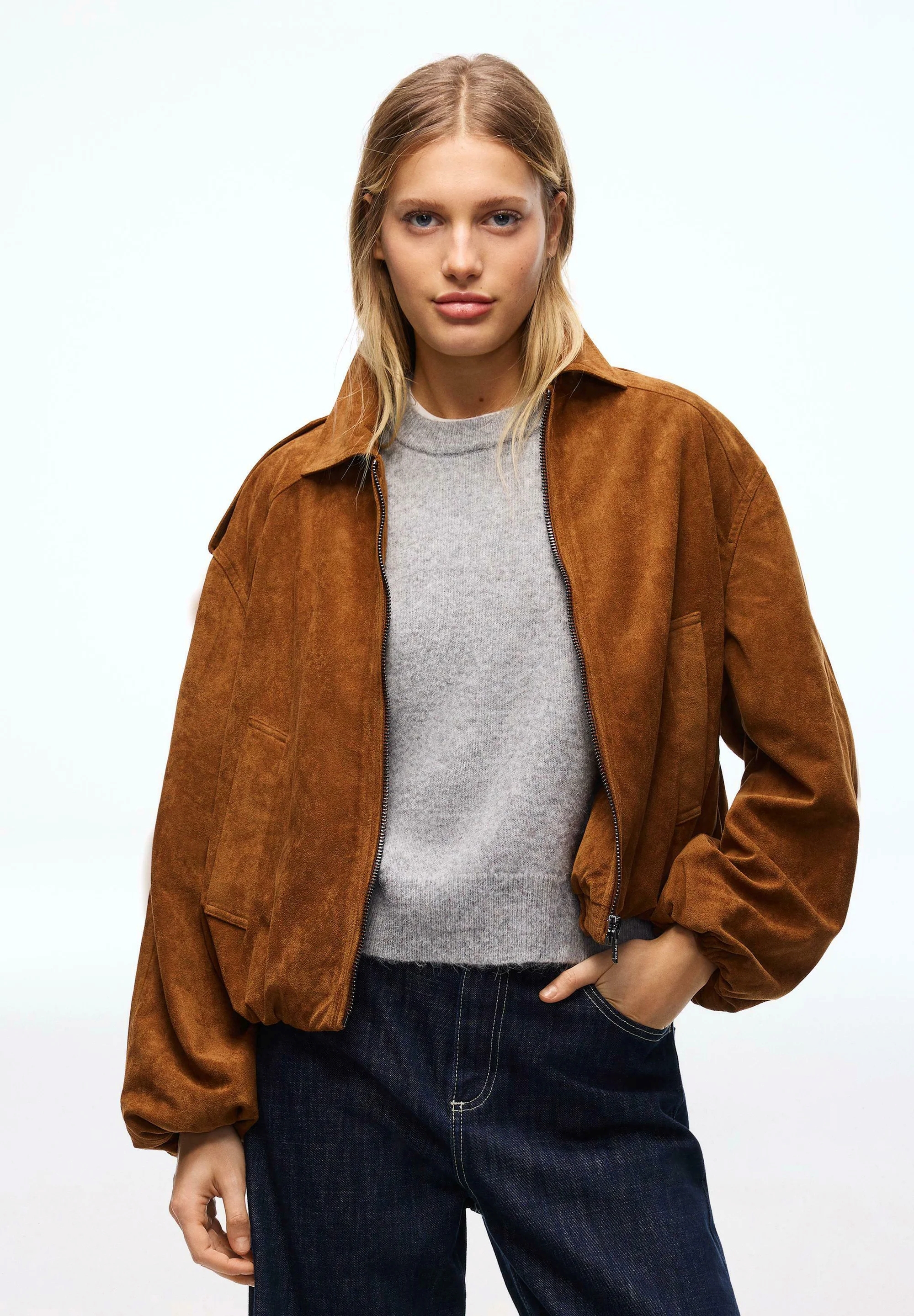 A finom, nőies ruha és a karakteres velúr kabát kombinációja erős kontrasztot teremt. Ettől az outfit egyszerre lesz hétköznapi és különleges. Hasonló velúrkabátot beszerezetünk a Zalando kínálatából, míg ruhát a Zara kollekciójában találunk.