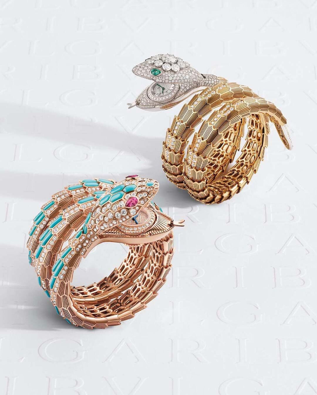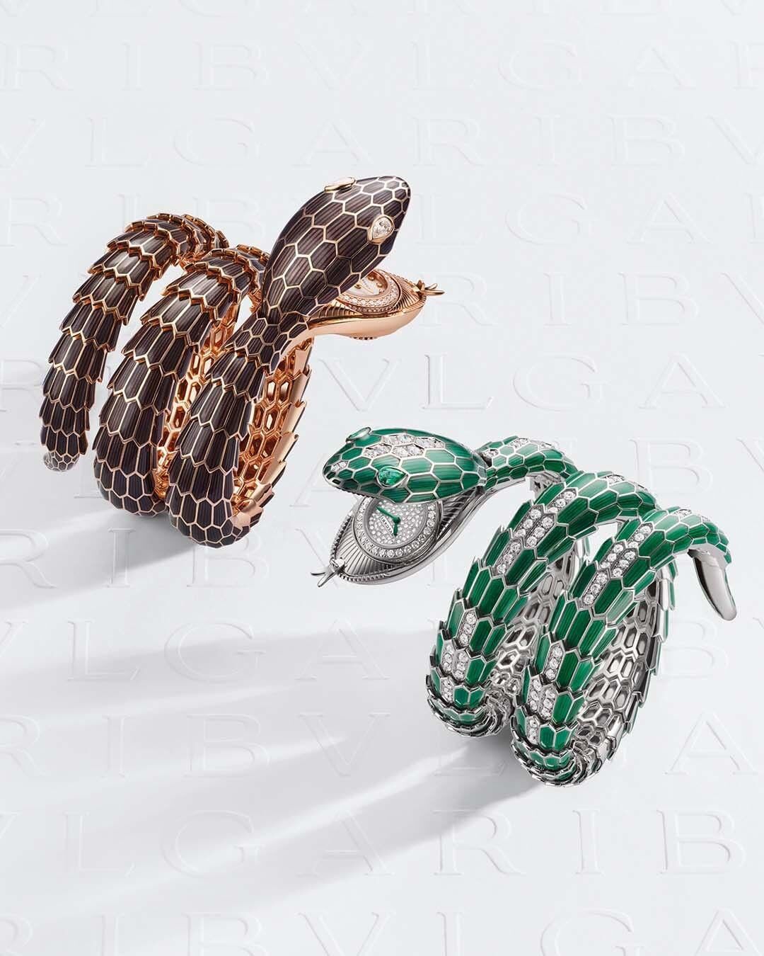 Az új modellek az 1950-es évek ikonikus dizájnját dolgozzák újra. A közel 80 évvel ezelőtt megjelent darab téglalap alakú számlapját egy csuklós — gomb megnyomásával felnyíló — fedőlap takarta el, amit briliáns gyémántokkal raktak. A titokzatosságot megtartva egy hasonló mechanizmust alkalmaztak a Bulgari Serpenti óráknál is: a kígyók nyelvét kell megnyomnunk ahhoz, hogy szemünk elé táruljon a hagyományosan nőies, apró motorokkal ellátott időjelző.