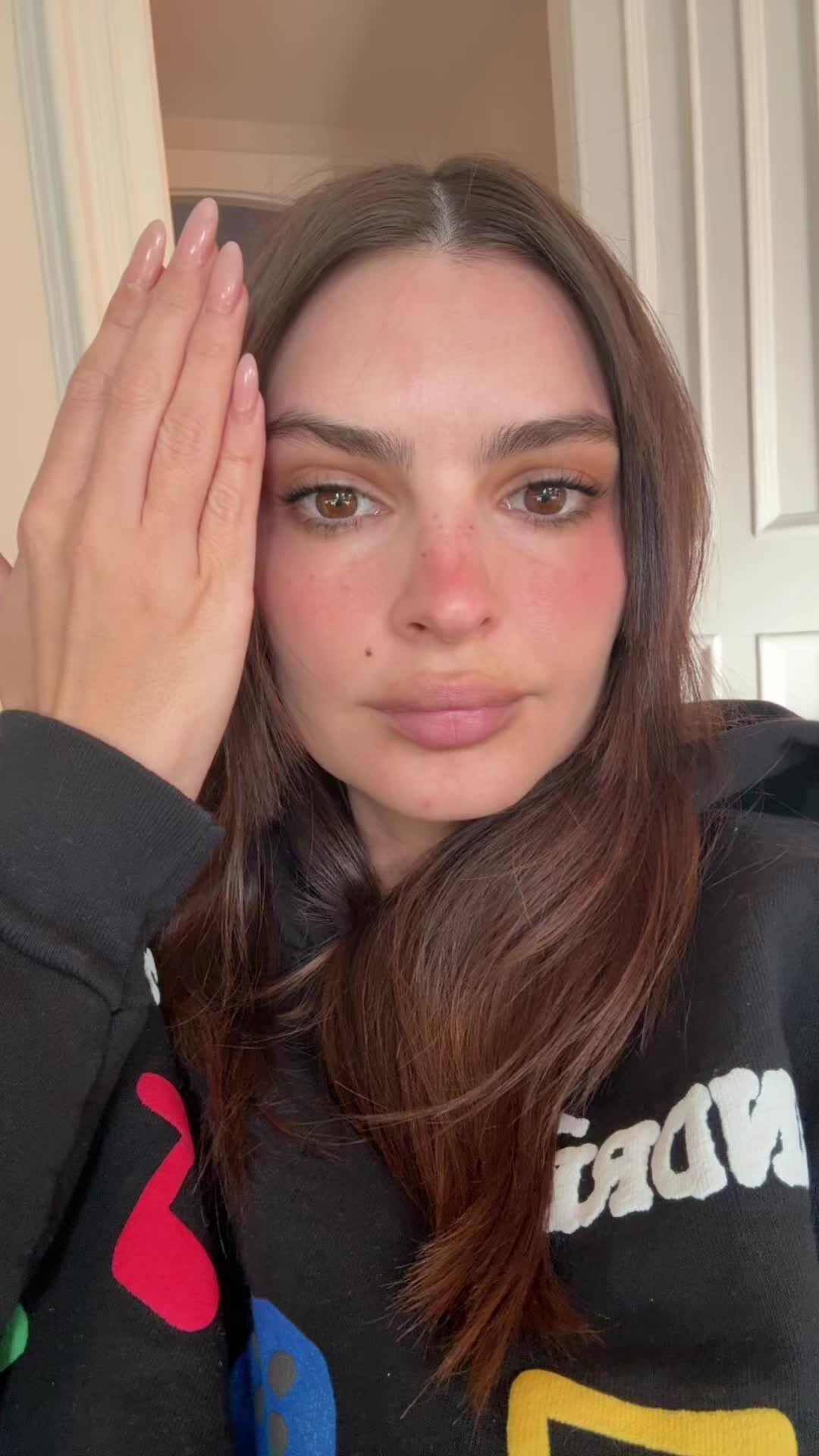 Az első videóban Ratajkowski először egy szűrővel részben eltakarja a haját, közben azt mondja: