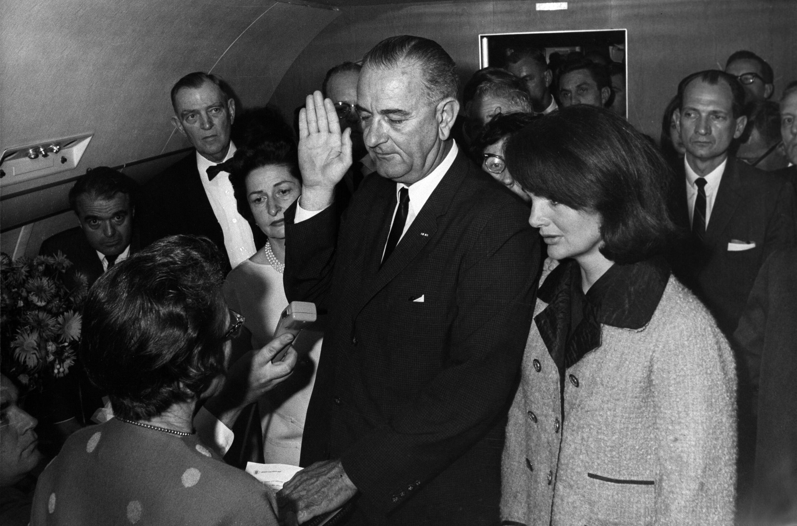 Jackie úgy döntött, hogy nem öltözik át, még akkor sem, ha beleegyezett, hogy jelen legyen az új elnök, Johnson hivatalos eskütételénél. Az egykori first lady már akkor is tudta, hogy a fotók milyen erővel képesek üzeneteket közvetíteni. Az arcán pedig tisztán látszik a sokk és a zavarodottság.
