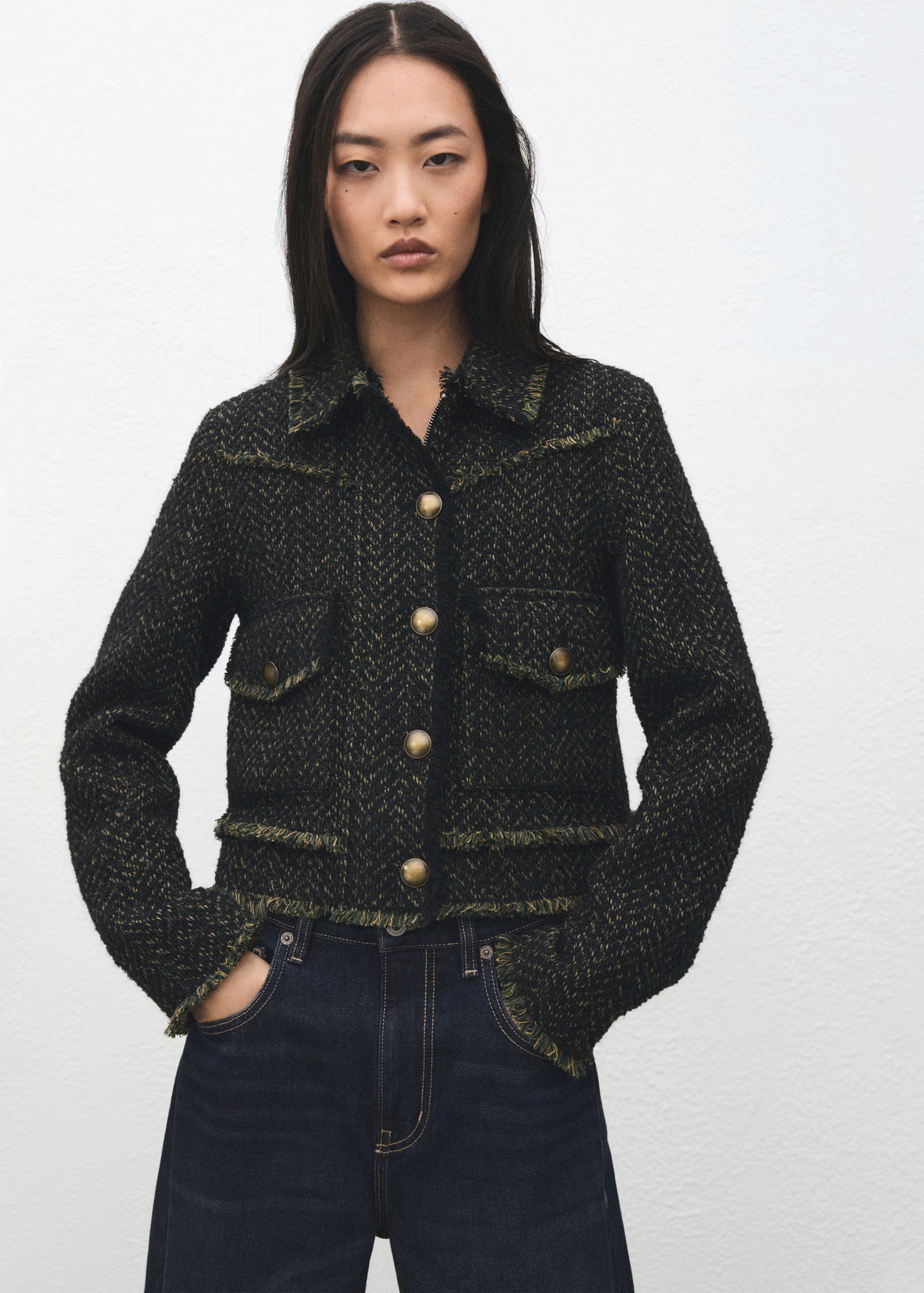 Harry Styles Grammy-ruhájának és Matthieu Blazy Chanel bemutatójának inspirációjából született a tweed kabátok trendje. Főleg farmerral kombinálva válik izgalmassá: elegáns, mégis laza, a csendes luxus egyik legjobb példája. Ha tweed anyagú dzsekire vágyunk, ezüstös vagy zöld árnyalatban megvásárolhatjuk a Mango üzleteiben.