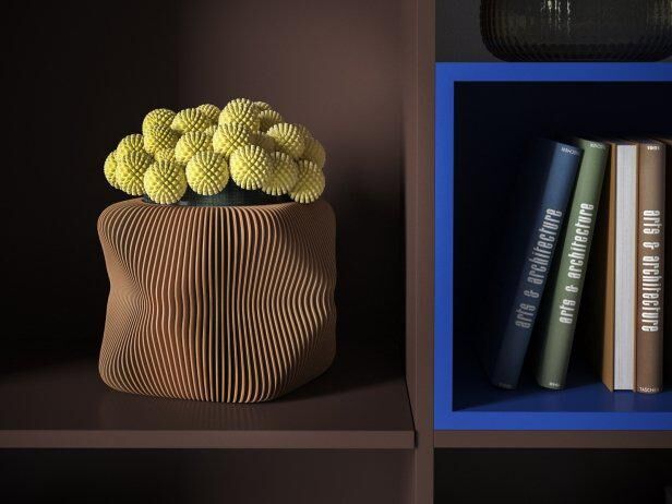 A virágtartó elnevezése „árnyékok földjét” jelent, mellyel a textúrára utalnak. A különleges kaspók mintáját 3D nyomtatással alakították ki, az anyag tekintetében pedig kukoricakeményítőt és újrahasznosított fát alkalmaztak a szakemberek.