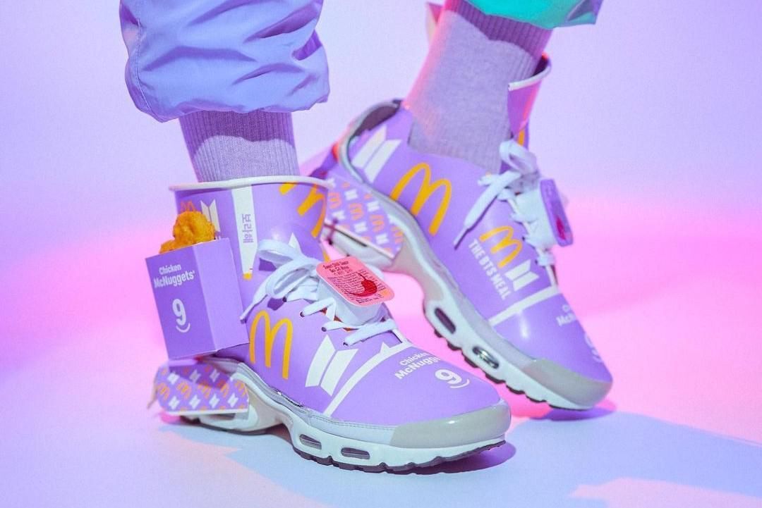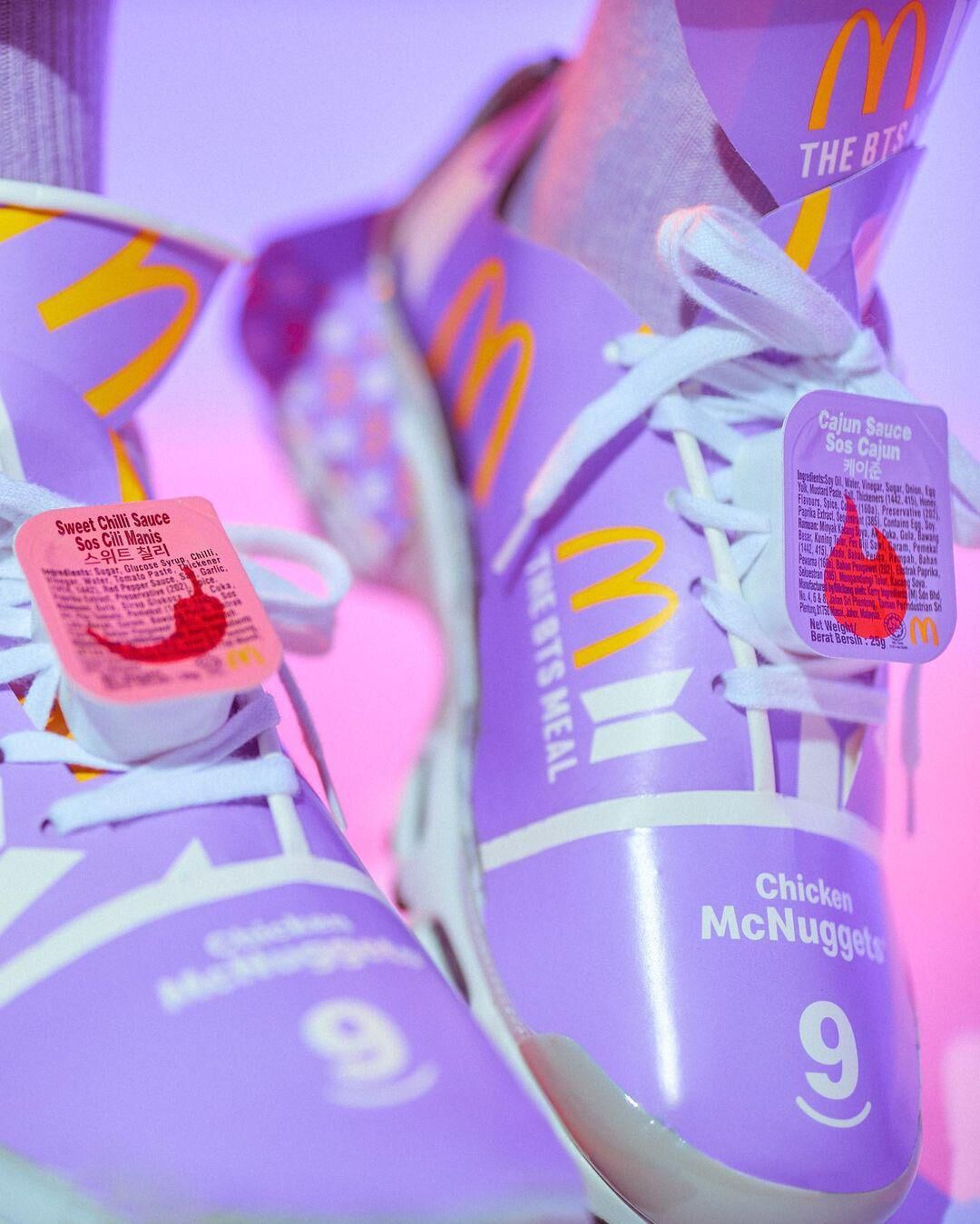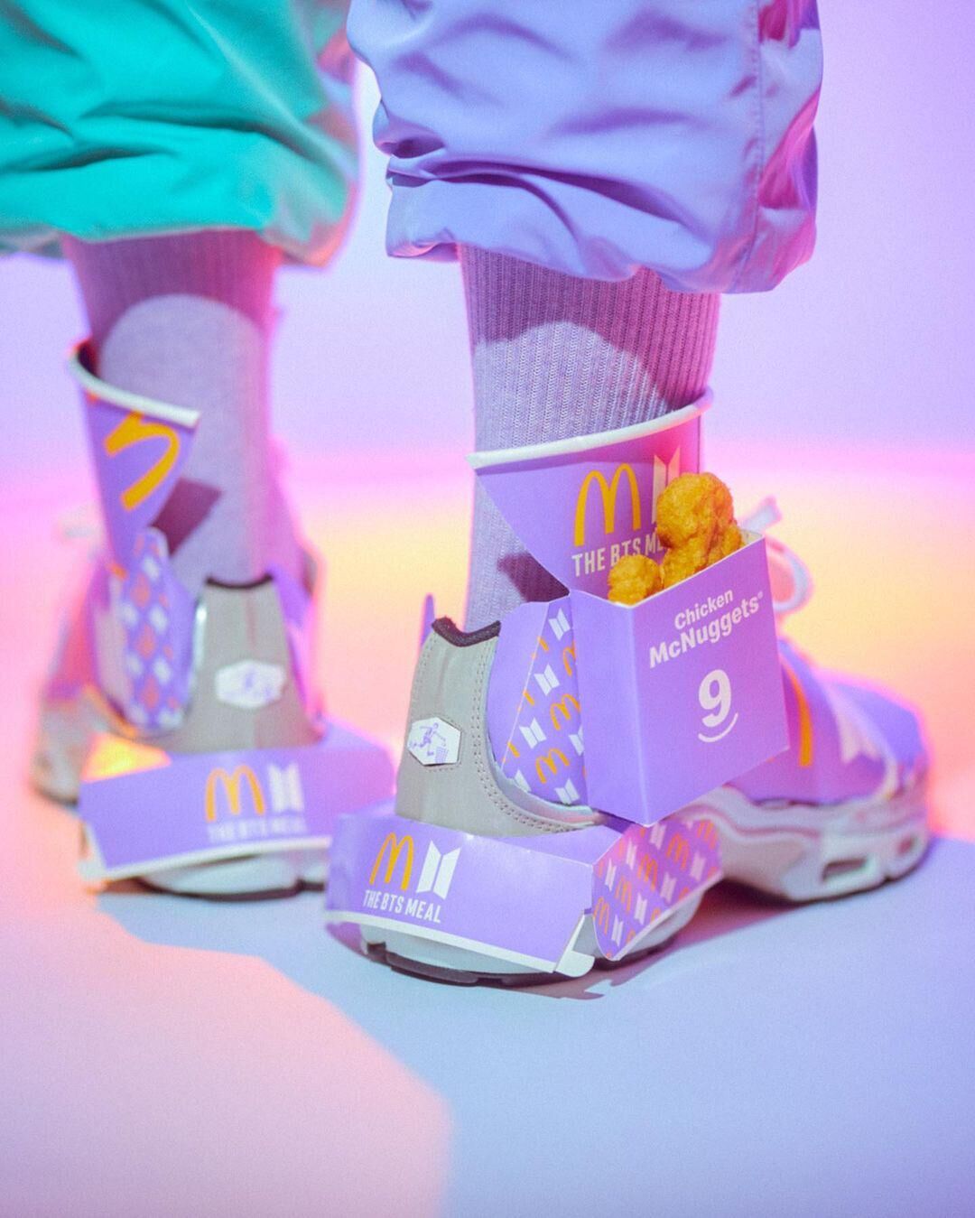 A tervező a gyorsétterem-lánc és a BTS nevű koreai fiúbanda együttműködését használta ki, hogy megalkossa cipőjét. Felhasználta az ételek dobozait, valamint a menühöz kapott poharat is.