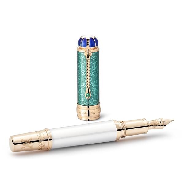 A romantikus szerelmük és a művészet iránti közös szenvedélyük megünneplésére hozott (gyöngyházból készült szárral, amelyet a Viktória esküvői ruhájának színei által ihletett, Au 750 tömör pezsgőszínű arany szerelvényekkel kombináltak), a 100-as limitált kiadású darab egy mestermű. Számos esztétikai elemében utalásokat hordoz a pár kilenc gyermekére és a Kensington-palota hálószobájában – ahol Viktória hercegnő felnőtt – megtalálható hagyományos dizájnra,