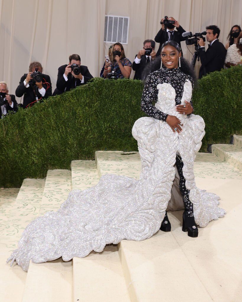 Simone Biles a 2021-es Met-gálán egy Area-ruhát viselt, amely messze nem volt légies anyag. A szóban forgó ruha körülbelül 40 kilót nyomott.