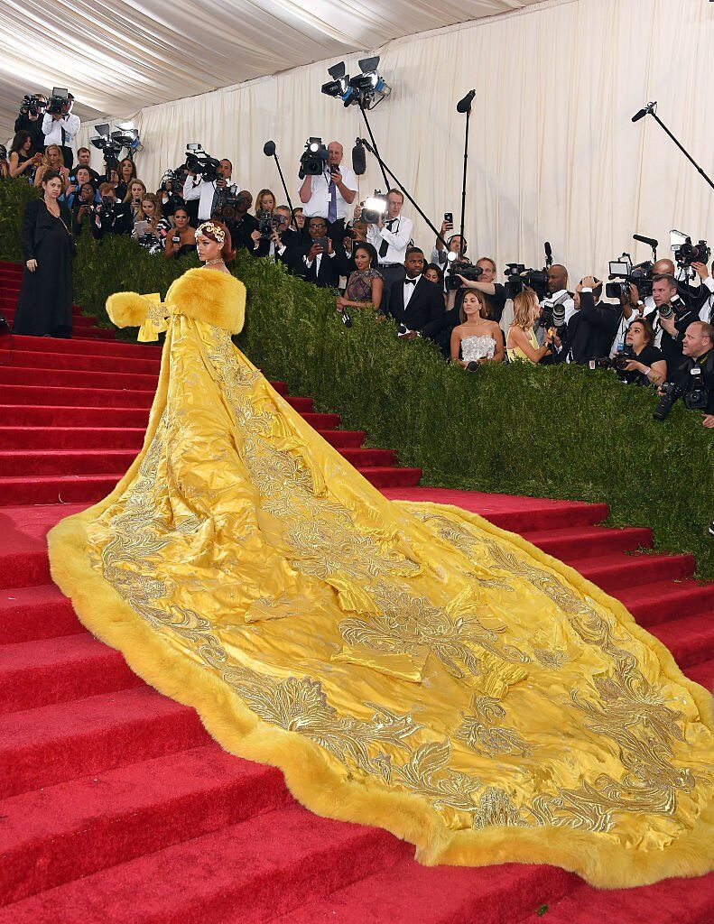 2015-ben Rihanna a Met-gála társszervezője volt, és egy olyan Guo Pei köpenyt viselt, amely körülbelül 25 kilót nyomott, így segítség nélkül nem is nagyon tudott benne közlekedni.