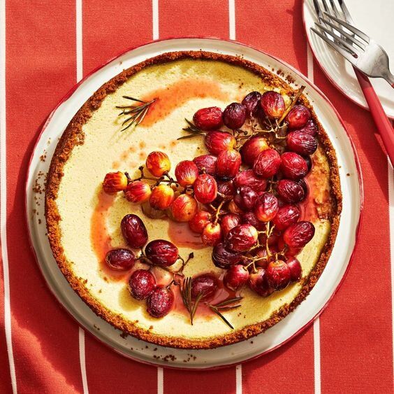 6. lépés: Vegyük ki a desszertet a tortaformából, és tegyük rá a tetejére tegyük a sült szőlőt.