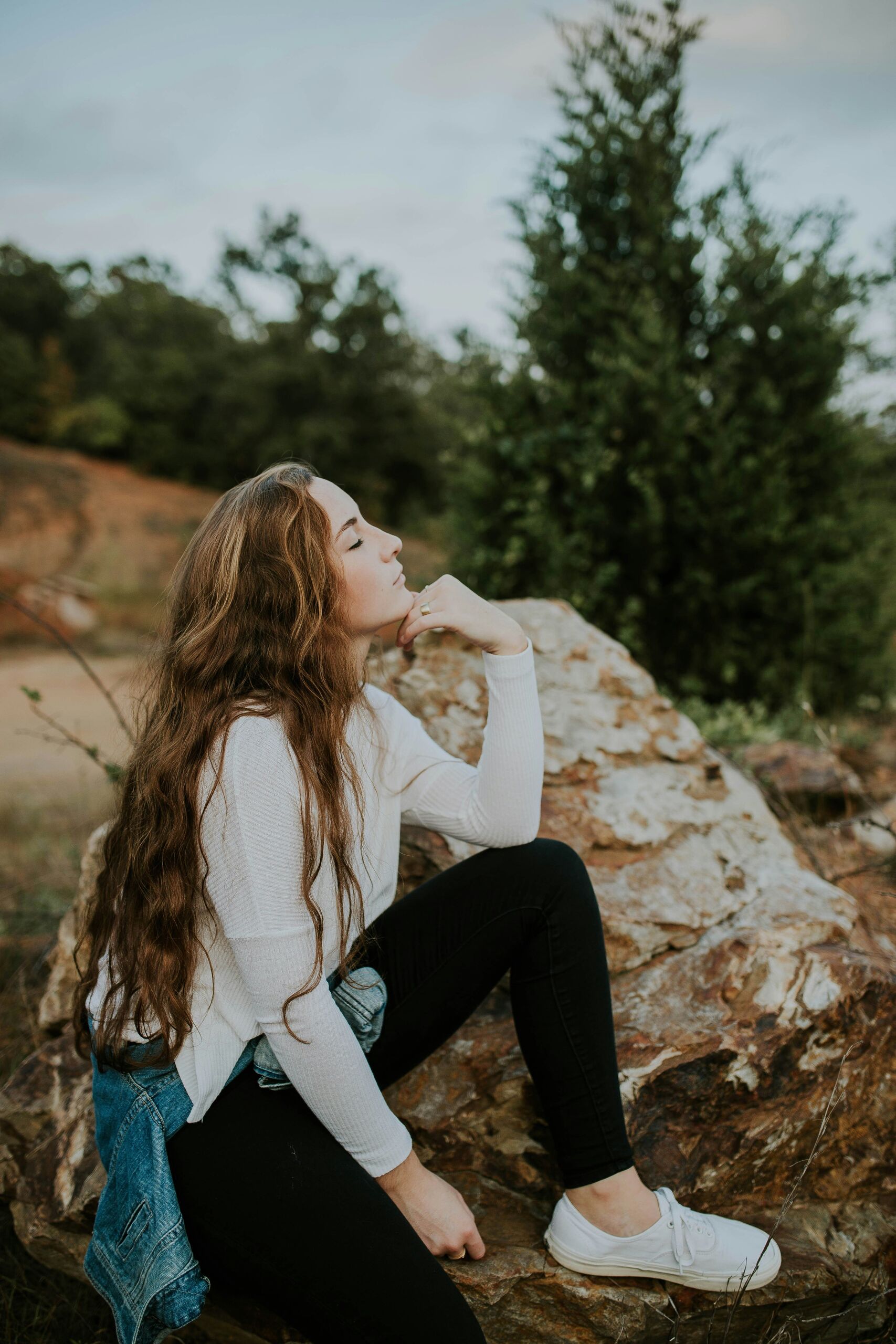 woman sitting on rock near green tree under white clouds and blue skyPhoto by Brooke Cagle on Unsplash