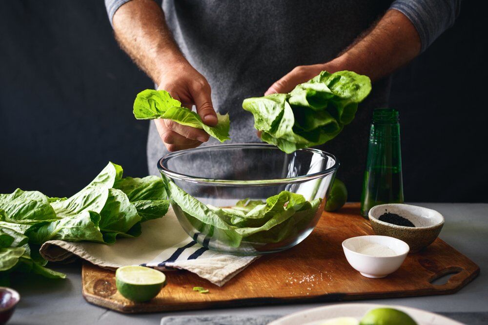 Ennek a könnyed, nyári salátának a merész ízét a szardellával párosított zúzott fokhagyma adja többek között, míg a citrom élénk savasságot, a dijoni mustár pedig tejmentes krémességet kölcsönöz. Tökéletes helyettesítő nincs, de ha inkább kihagynánk a szardellát, használjunk Worcestershire-szószt, szójaszószt vagy misopasztát.