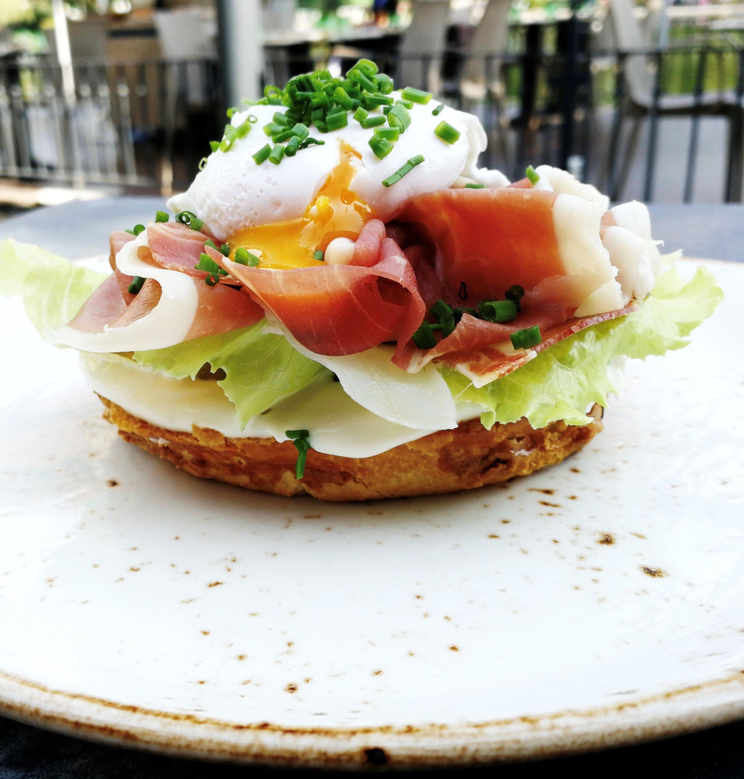 Ha kellő vehemenciával és szélesvásznú önbizalommal van az alkalmilag konyhába látogató férfiember felvértezve, akkor fogjon kézen egy hamburger bucit, annak is leginkább az alját, vagy egy kerekre fazonírozott toast kenyeret és vajon pirítsa meg kissé mindkét oldalát, majd szépen ágyazzon meg rajta a komótosan később érkezőknek némi majonézzel. Rétegezzen rá pármai vagy serrano sonkát, esetleg serpenyőben ropogósra pirított bacon-t. Erre kerül a buggyantott tojás, ami - nem, nem egy szellemileg kihívásokkal küzdő, ütődött tojás, hanem - egy kétségtelenül haladó szaktudást igénylő, bonyolultabb módozat.