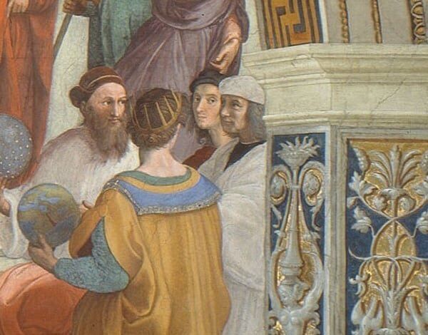 A reneszánsz az ókori társadalomra tekintett vissza útmutatásért, a művészek feladata pedig volt, hogy tisztelegjenek a korszak legnagyobb alakjai előtt. Raffaello freskója ókori filozófusok, matematikusok, tudósok gyülekezetét ábrázolja, a középpontban Arisztotelész és Platón foglal helyet. A színen olyan alakok is szerepelnek, mint Arkhimédész, Hérakleitosz, Szókratész és Zarathusztra.
