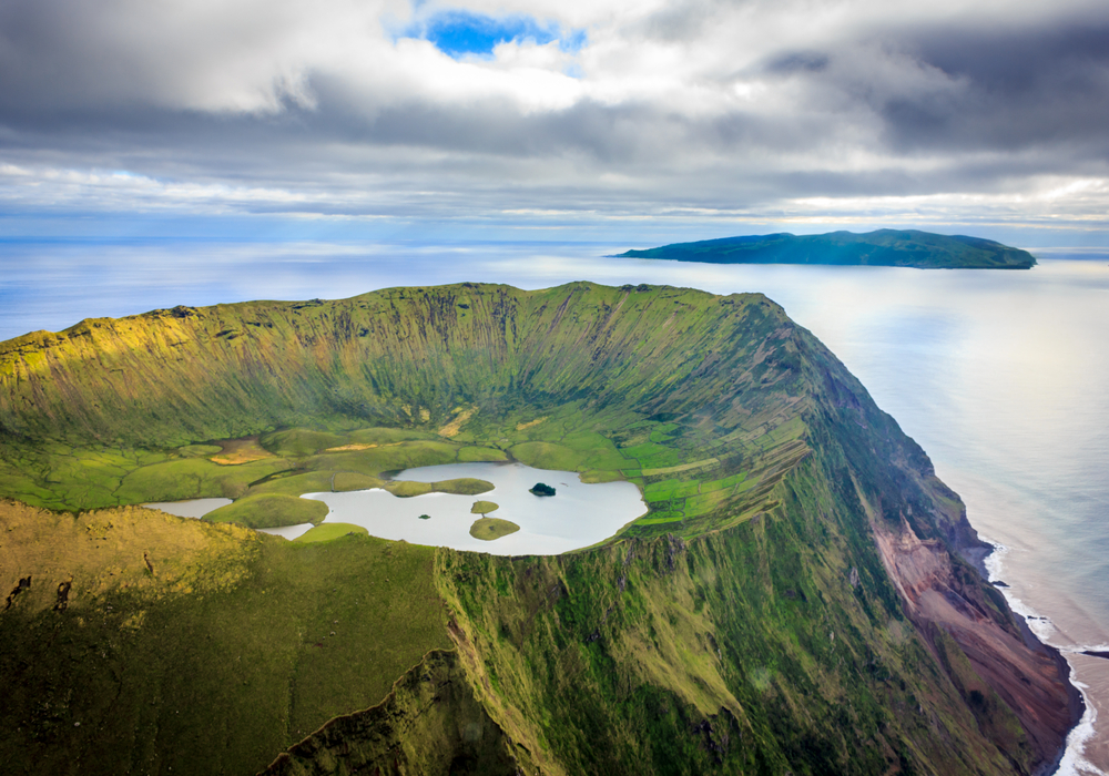 Az Azori-szigetek legkisebb tagja Corvo, amely alig 17 négyzetkilométeres. Fő látványossága a Caldeirão, egy hatalmas vulkáni kráter, benne két tóval, zöld legelőkkel és vadvirágokkal. A kráter körüli túra után érdemes felkeresni az egyetlen falut, Vila do Corvót, ahol mindössze 380-an élnek, mielőtt kompra szállnánk Flores felé.