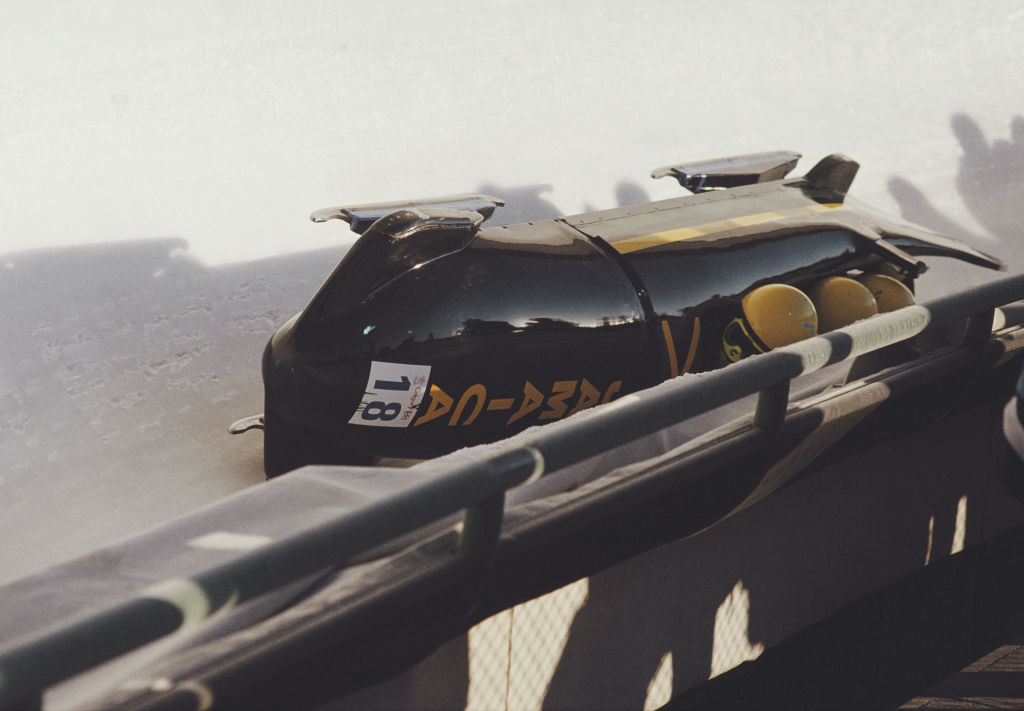 A jamaicai bobcsapat, Dudley Stokes és Michael White verseny közben. A történetük később legendává, majd kultfilmmé (Jég veled!) vált.