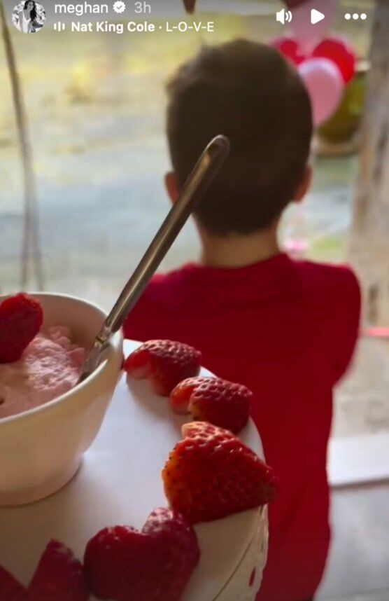 Meghan az Instagram-sztorijában osztotta meg a családjáról készült felvételeket, amint egy Valentin-napi reggelit készítenek Nat King Cole L-O-V-E című dalának dallamára. A videón látható, ahogyan szív alakú epreket szeletel, míg Lilibet rózsaszín szíves pizsamában a piros-rózsaszín bagel tetejére rendezgeti őket.