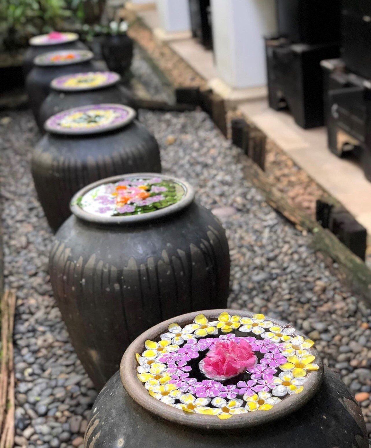 A mi szállodánk egy teljes kerület-hatalmas, burjánzó növényzetű, gyakorlatilag arborétum közepén fekszik tavirózsáktól alig látszó tavakkal, lassan csörgedező patakokkal, amikbe behelyezett sziklákon zergeként szökkengetve haladhatunk átugrabugrálva. Óriás dézsákban összegyűjtött esővízbe kézműveskednek virágsziromból mintázott díszeket, kivájt belsejű kidőlt fatörzsek szolgálnak elfektetve békanyálban, virágokban dúskáló kertdíszként, mindenütt orchideaágak bólogatnak a halvány kis enyhet adó szellőben, miközben nappali fényben madarak ciceregnek, napnyugtától pedig kabócák húzzák fáradhatatlanul a talpalávalót. Egyszóval minden annyira idilli, hogy óránként a pulzusunkat ellenőrizzük, hogy ez még vajon a valóság, vagy már meghaltunk és valamiféle bürokráciai gubancnak köszönhetően tévedésből a mennyországba kerültünk.
