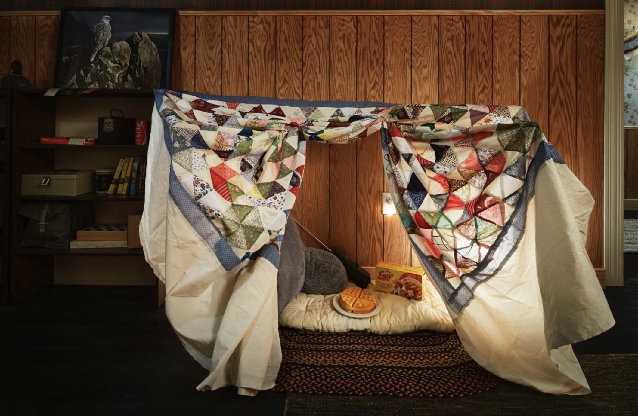 És még ennél is tovább mentek: berendezték Eleven kedves kis fészkét, ahol Mike Wheeler a család alagsorában bújtatta, és ahol a fiúk hosszú órákon át Dungeons and Dragonst szoktak játszani. Eleven helyére pedig még a kedvenc, Eggo márkájú gofriját is bekészítették. Megijedni azért nem kell: rendes ágy is van a szobában, szóval senkinek nem kell ezen a kis búvóhelyen aludnia majd.