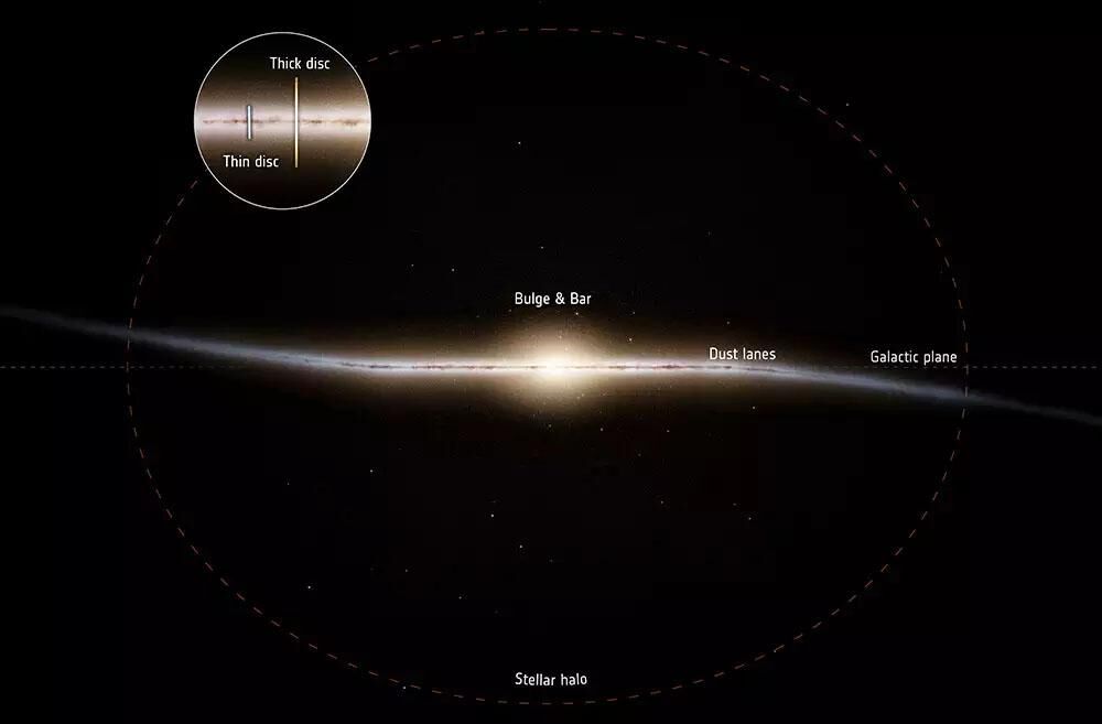 Mindezek után az információk a galaxis történetének két különböző szakaszát mutatják. Az első fázis 0,8 milliárd évvel ezelőtt kezdődött, amikor a vastag korongban csillagok kezdtek kialakulni. Nagyjából kétmilliárd évvel később a Gaia-Sausage-Enceladus (ESA) nevű törpegalaxis összeolvadt a Tejútrendszerrel.