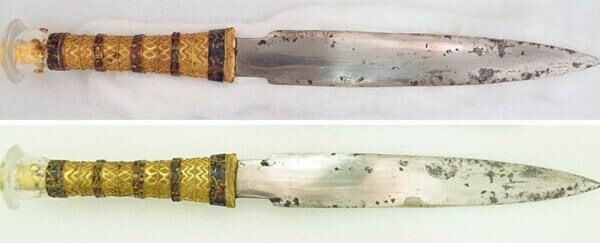 Az eszközön végzett elemzést nagyfelbontású fényképezéssel és röntgensugarakkal végezték. Ennek köszönhetően megtudták, milyen meteor szolgálhatott alapanyagként, valamint azt is, hogyan kerülhetett az ősi uralkodó tulajdonába a fegyver.